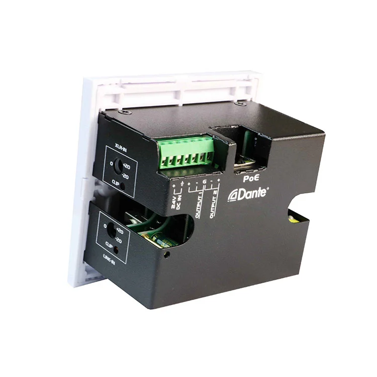 Ko te rarangi Atanga a Dante e huri ana i nga waahanga whatunga kanikani e rua ki nga whakaurunga oro a Audio me te rua o nga whakaurunga oro takirua ki nga tohu Dante. E waatea ana i roto i nga waahanga e rua-dwp22l-US (he mea hototahi ki a US rua-gang tuarua) me te DWP22L-EU (i hangaia mo nga pouaka o te Pakeha) -Te Tūhono noa mā te taura Cat5 ki te whakawhiti Ethernet me te whakamahi i te Kaitohaina Dante ki te haere i nga tohu oro-kore e puta ana puta noa i te whatunga.